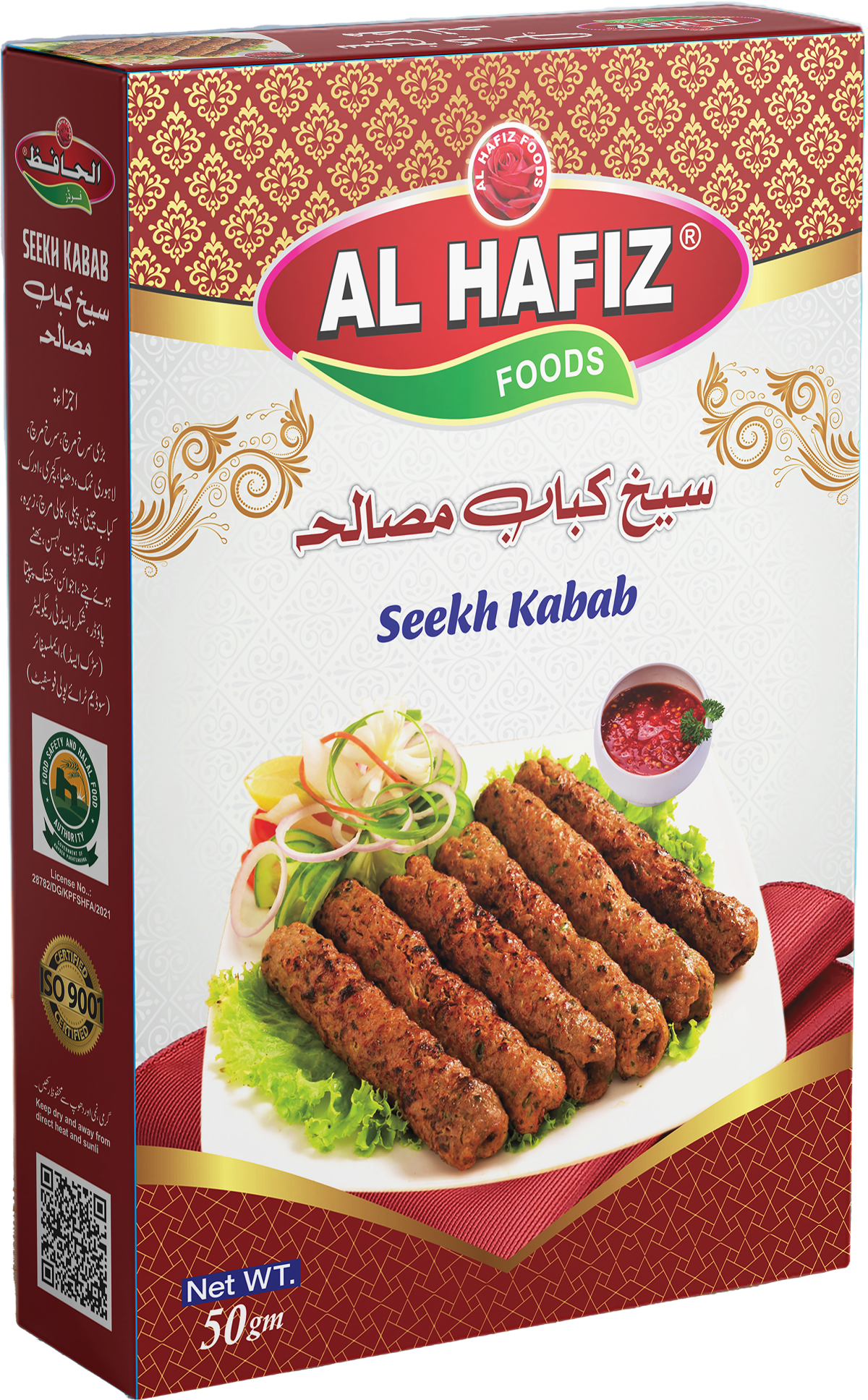 Enjoy the irresistible taste of traditional BBQ at home with Alhafiz Foods Seekh Kabab Masala — a premium blend of rich, aromatic spices crafted to bring out the authentic flavor of perfectly grilled seekh kababs.